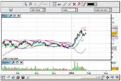 Let's begin with a 3 month closing line view of Alcatel without any indicators.